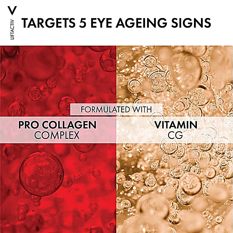 Targets 5 eye-ageing signs: crow’s feet, under-eye wrinkles, eye bags, dark circles, and drooping eyelids. With Pro-collagen Complex [Peptides + Pro-xylane + Vitamin C] to hydrate, brighten, and smooth the eye area. Recommended by dermatologists, fragrance-free, tested under ophthalmological control.