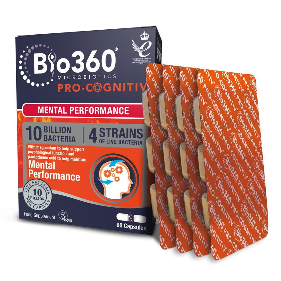 Unlock the potential of your mind with Bio360® Pro-Cognitiv®, a revolutionary daily microbiotic supplement designed to support mental performance and overall cognitive health.