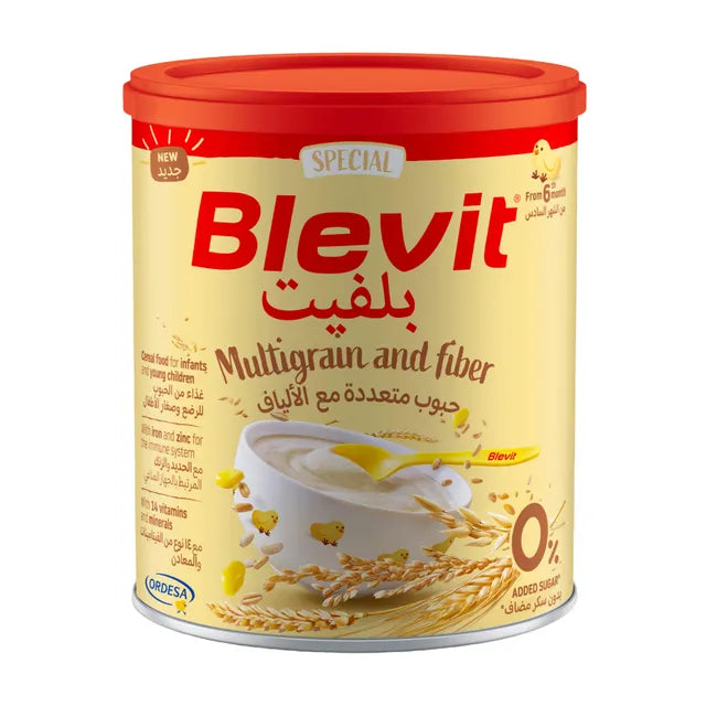 Blevit Multigrain and Fiber contains a high content of **calcium**, **vitamin C**, and **vitamin D**. **Vitamin C** enhances iron absorption, and **vitamin D** contributes to the maintenance of normal teeth. **Calcium** and **vitamin D** are needed for normal bone growth and development in children.