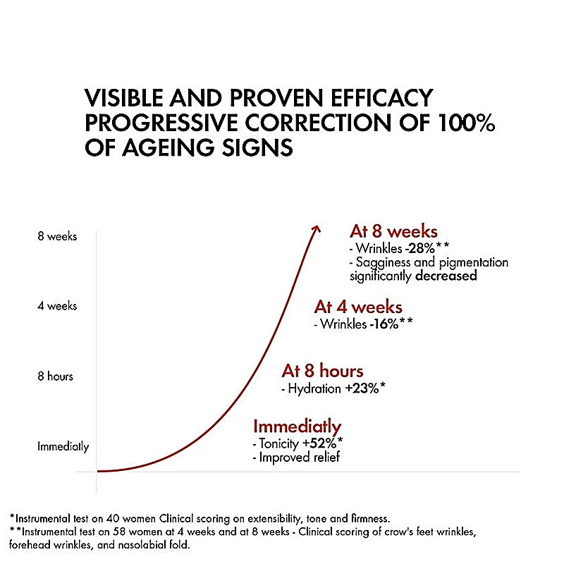 Anti-aging and energizing, the soft, velvety day cream targets signs of aging linked to collagen loss, including wrinkles, fine lines, and sagging contours. Formulated with Vitamin CG and collagen-protecting biopeptides, it melts into skin, promoting collagen production to help lift the appearance of wrinkles, redefine facial contours, and even out the look of skin tone. After use, skin looks supple, youthful, and instantly smoother.