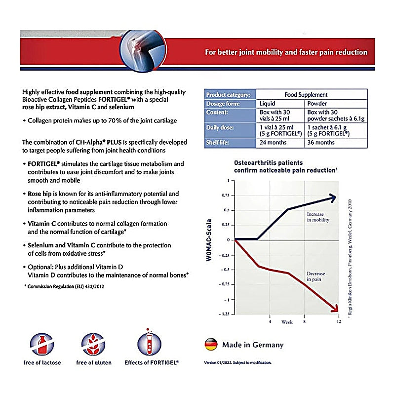 Natural product CH-Alpha® Plus has an amino acid composition that is remarkably similar to the collagen present in the extracellular matrix of the body’s joints. It has been demonstrated that CH-Alpha® Plus stimulates chondrocyte cartilage cells, which are in charge of preserving the health of cartilage.