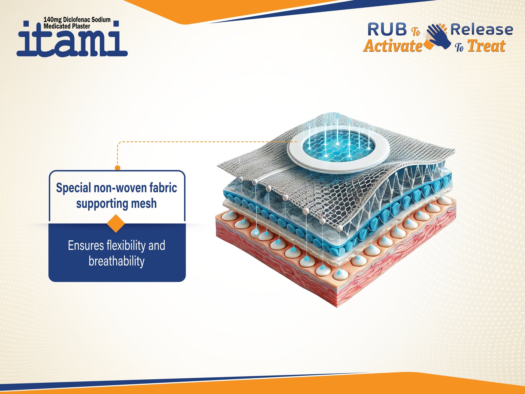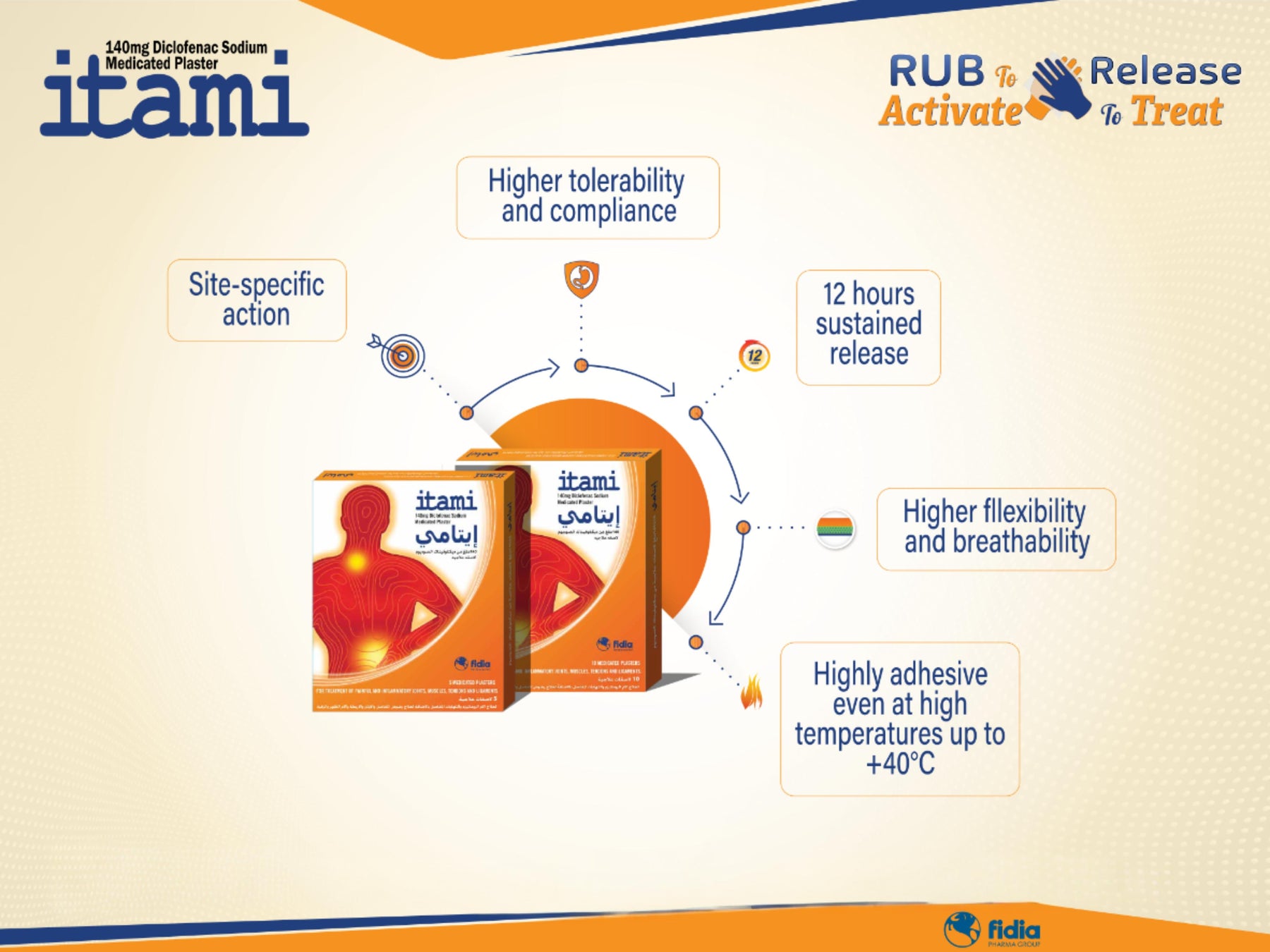 Itami Plasters have analgesic and anti-inflammatory effect, it is used for the local symptomatic and short term treatment (max. 7 days) of pain associated with acute strains, sprains or bruises on the arms and legs as a result of injuries, e.g. sports injuries in adolescents from 16 years of age and adults.