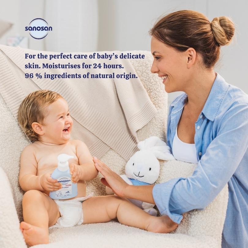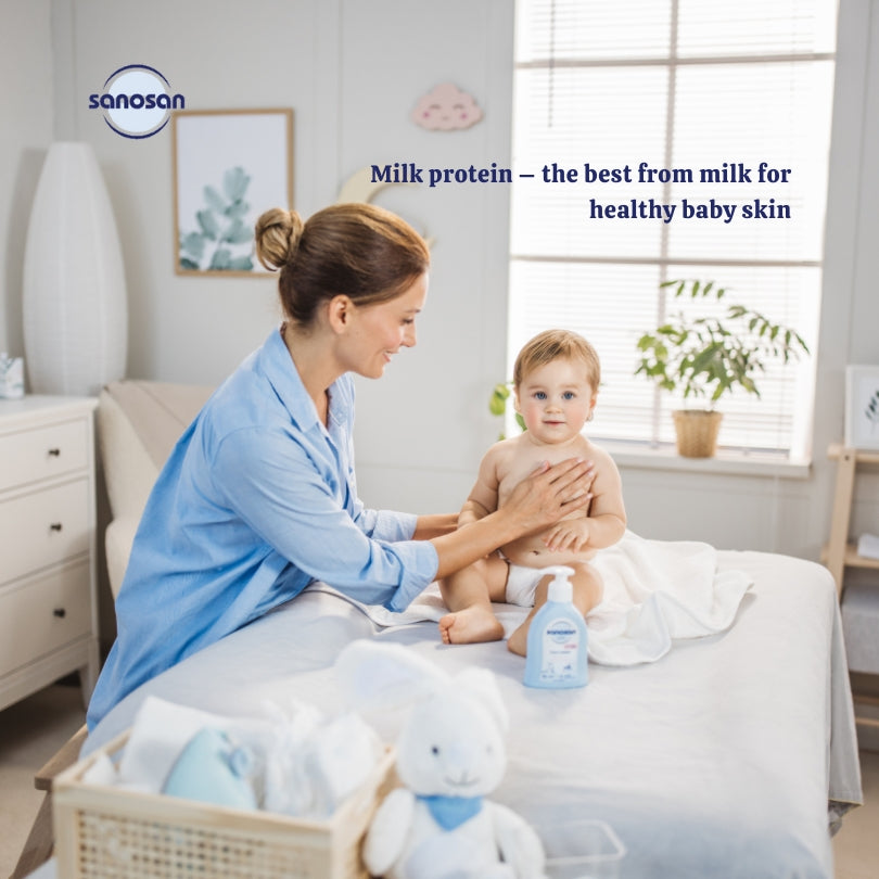 With natural milk protein – the best from milk for healthy baby skin. For the perfect care of baby’s delicate skin. Right from the start. Moisturising formula with panthenol and chamomile. Soothes the skin and moisturises for 24 hours.