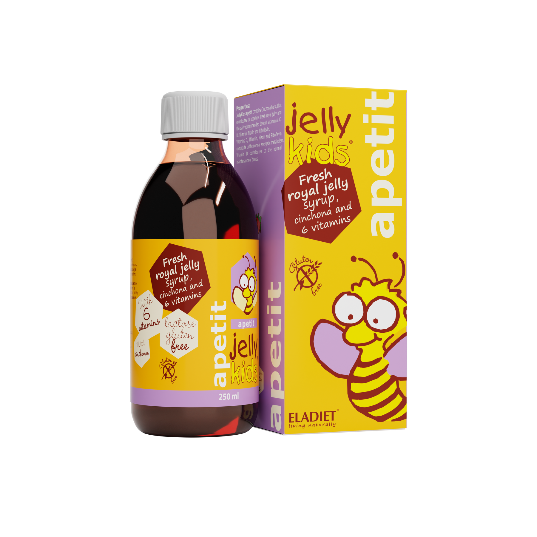 Jellykids Apetit Strawberry is based in fresh royal jelly with cinchona and vitamins.