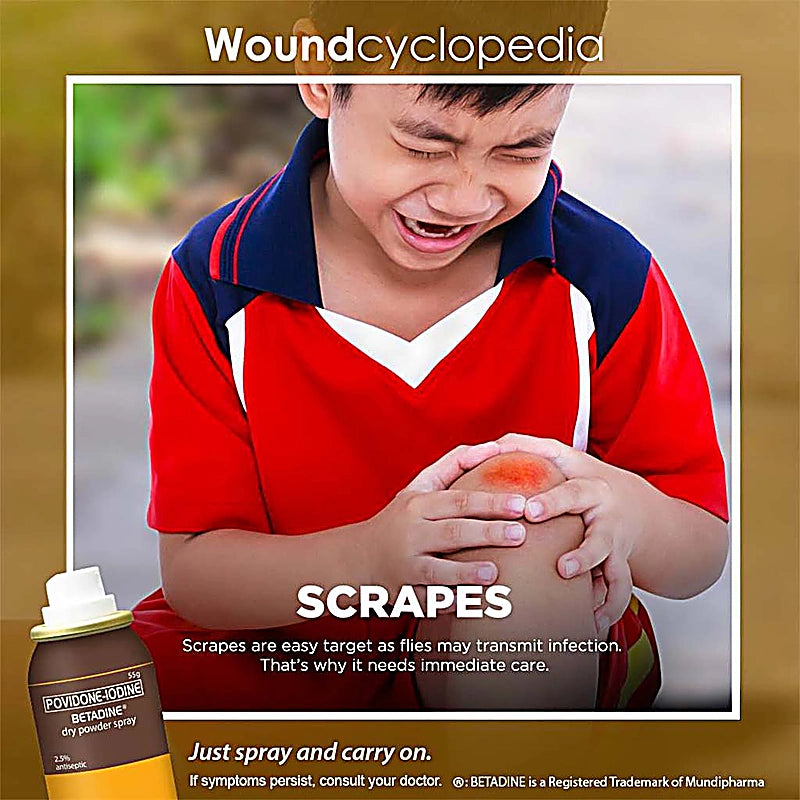 Betadine Dry Powder Spray helps provide infection protection against a variety of germs that can cause infection in minor cuts, scrapes, and burns – all with no mess, no touch and no drip.
