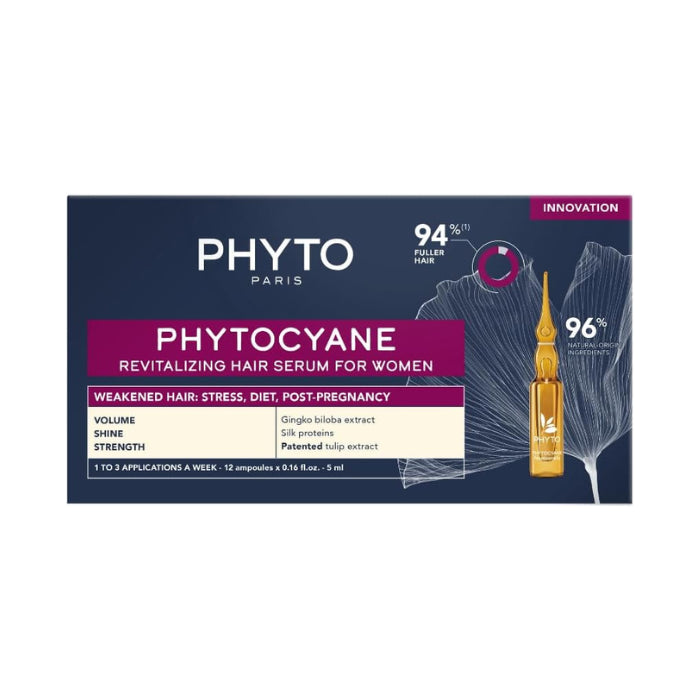 Introducing Phytocyane Women Revitalizing Hair Serum Ampoules – a luxurious treatment designed to rejuvenate and revitalize thinning hair. This set includes 12 ampoules, each formulated to boost hair vitality and enhance overall health.