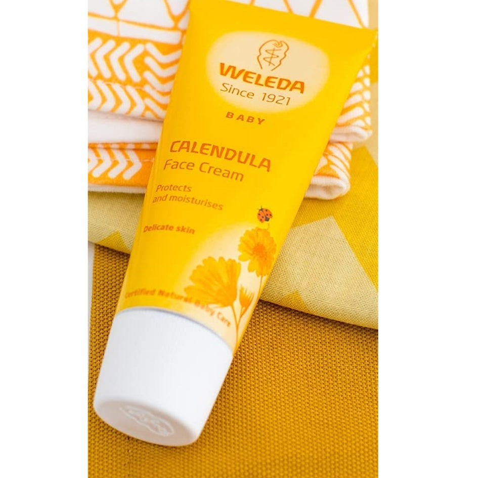 There’s a lot of learning when baby first faces the world – and baby skin is developing too. Five times thinner than grown-up skin, and much more prone to moisture loss, baby skin needs natural help. Organic calendula extract wraps its protective mantle around tender facial skin, while skin-friendly lanolin and organic almond oil moisturize. Easy to use on the face and quickly absorbed. Mothers and midwives trust Weleda to bring the harmony of nature to babycare.